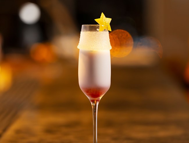 アーモンドバニラ、ヘーゼルナッツ、ラズベリーをまとったオリジナルカクテル